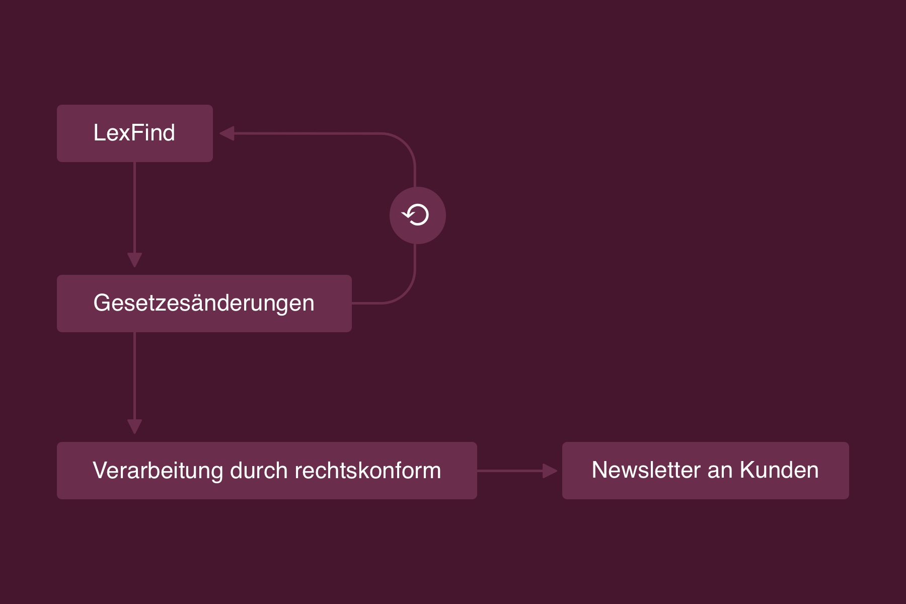 rechtskonform.ch bietet seinen Kunden einen wertvollen Service: die proaktive Information über neue Gesetze und Gesetzesänderungen. Diese werden nach Themenbereichen gegliedert und als Newsletter verschickt. Um dies zu gewährleisten, mussten die Mitarbeiter früher monatlich die Gesetzessammlung sichten, ob sich bei den relevanten Erlassen etwas geändert hat.